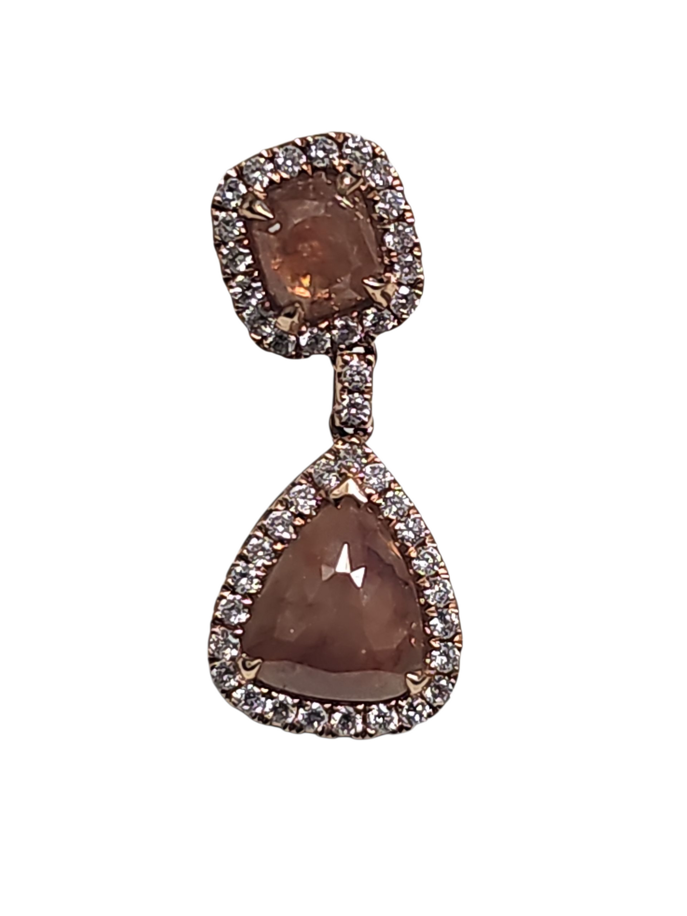 Brown Sliced Diamond Dangling Earrings in 14 Karat Rose Gold