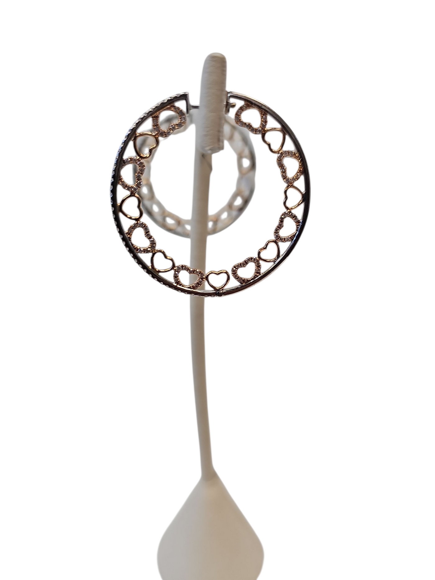 Repeating Heart Diamond Hoop Earrings in 18kt Two Tone Gold