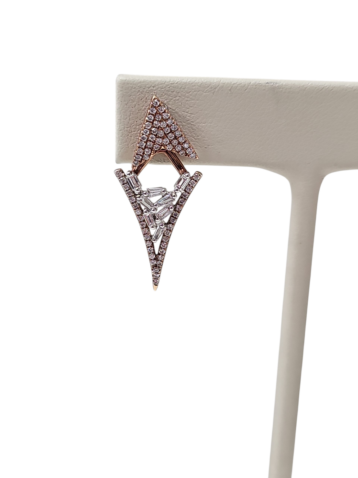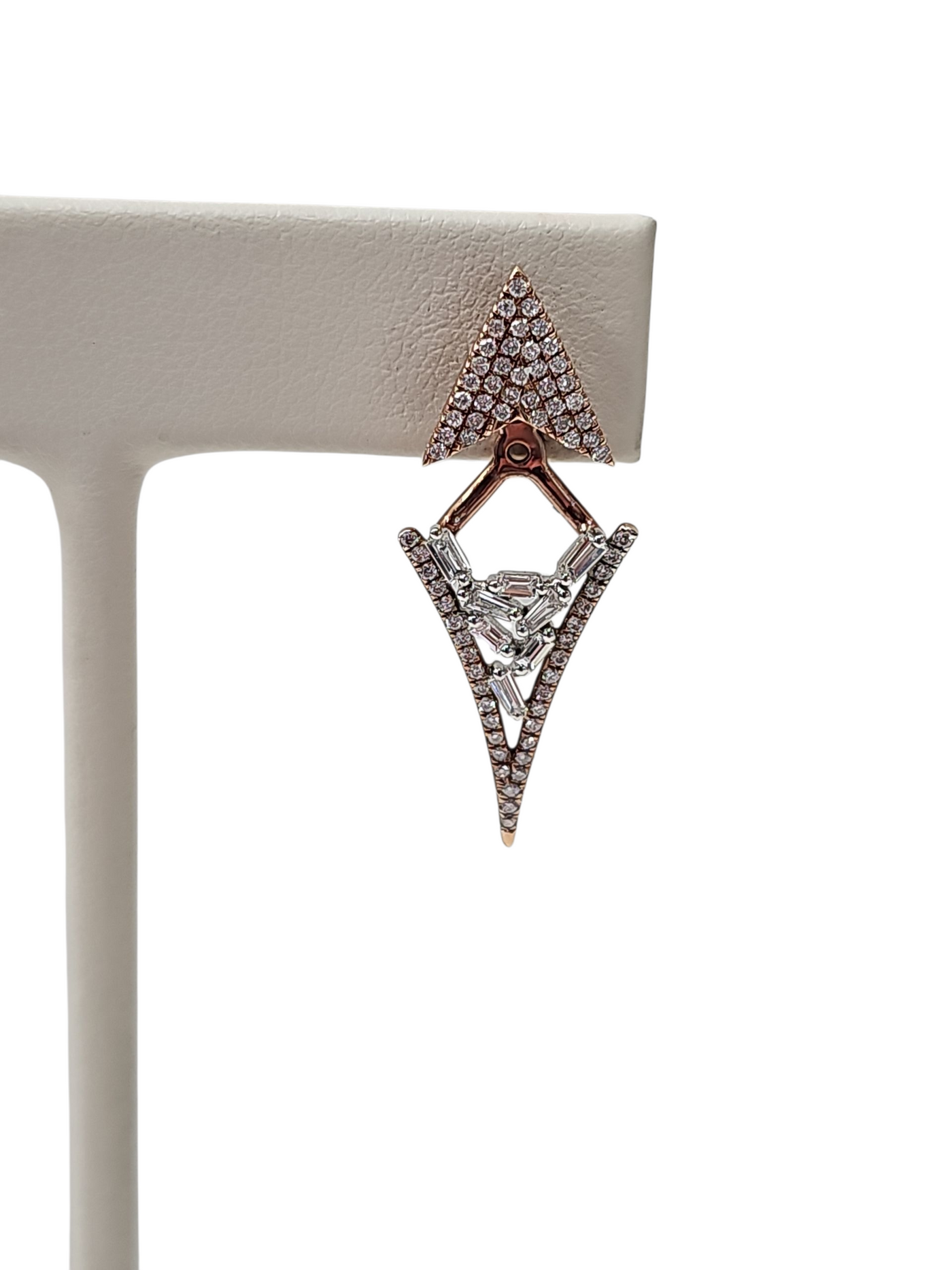 Double Arrow Baguette and Round Cluster Earrings in 18kt Rose Gold