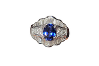 Lab Grown Blue Sapphire and Baguette Diamond Ring in 18 Karat White Gold