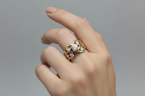 Sculptural Brilliant Cut 1.04 Carat Diamond Ring in 18 Karat Yellow Gold