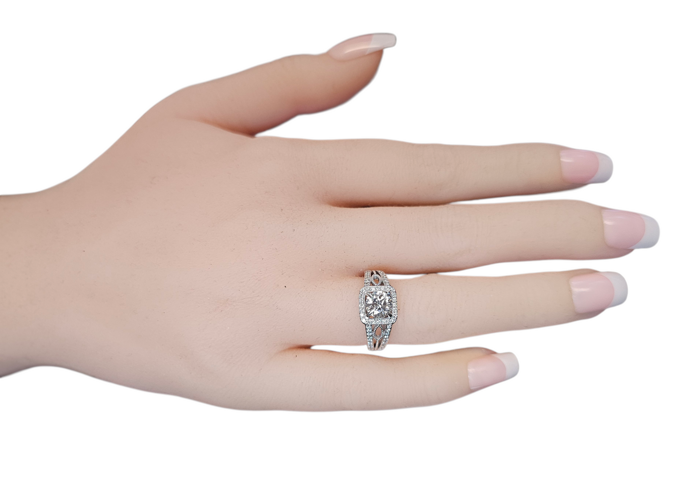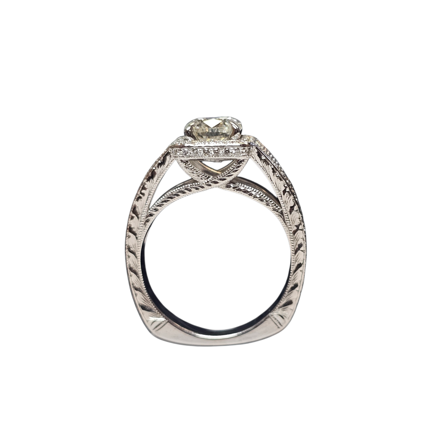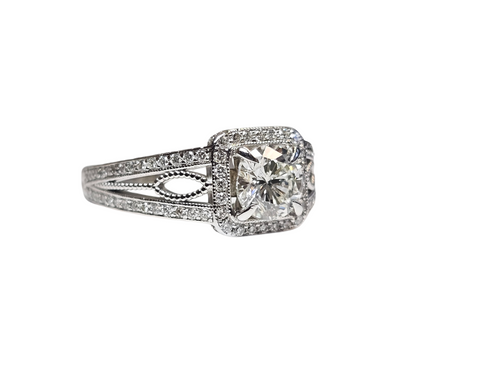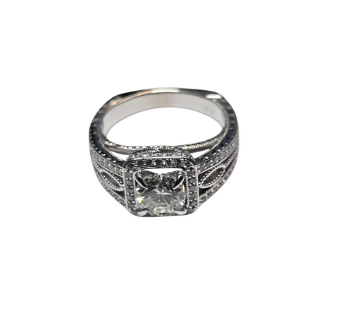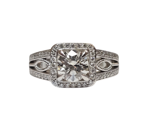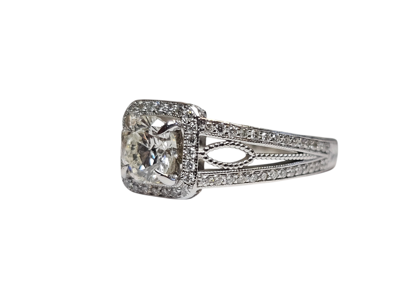 Vintage Round Diamond Ring with Melee in 14Karat White Gold