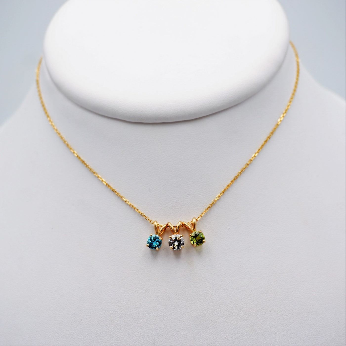 Trio Gemstones Pendants in a Necklace in 14 Karat Yellow Gold