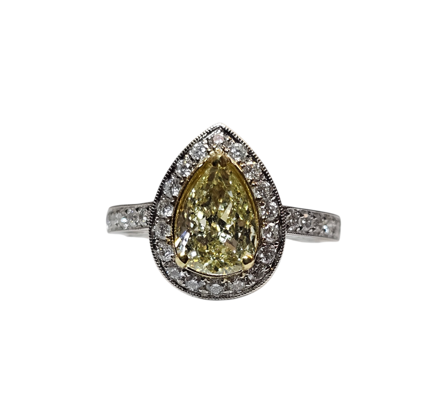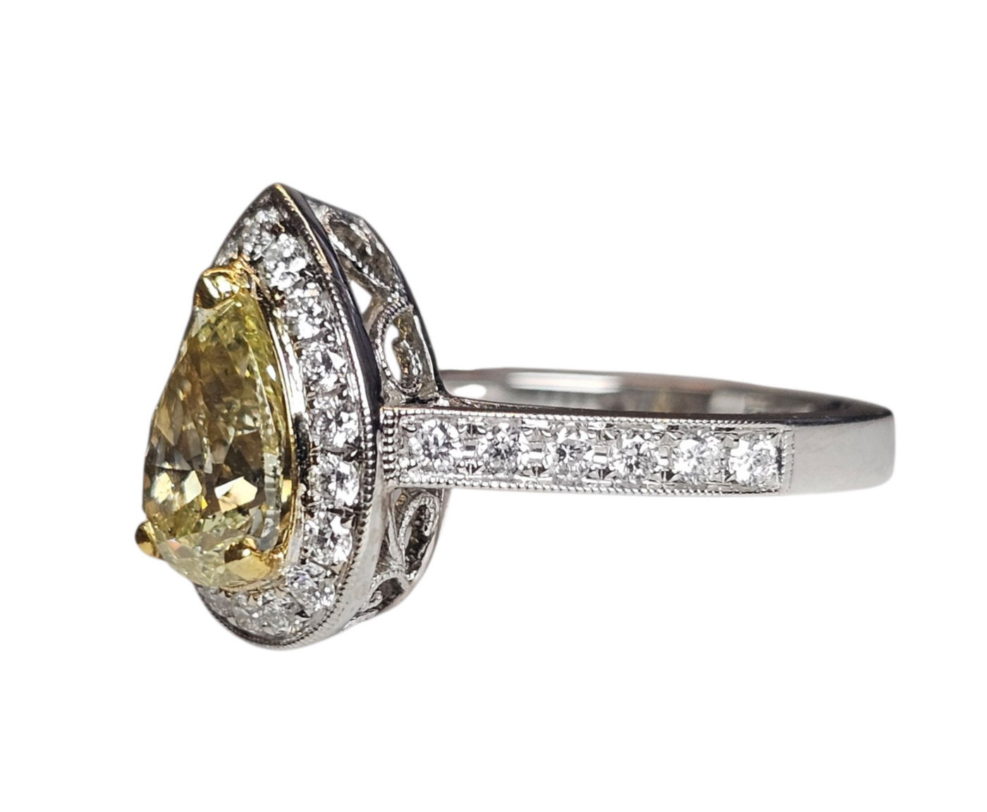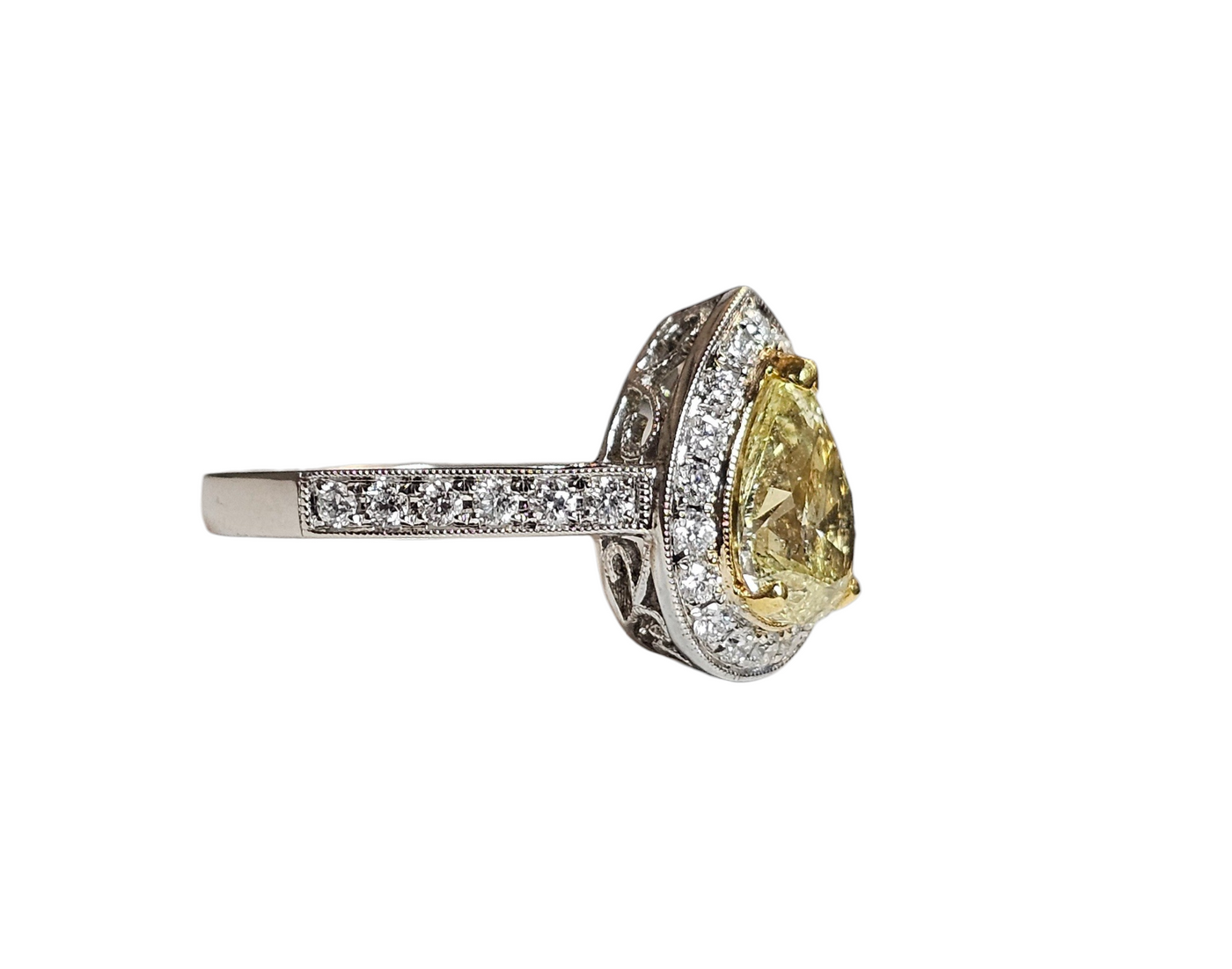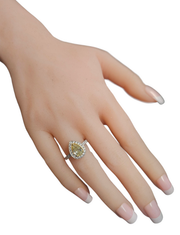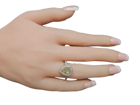 Pear Shaped Yellow Diamond Ring in 18Karat White Gold Sale