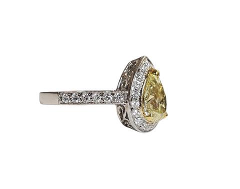 Pear Shaped Yellow Diamond Ring in 18Karat White Gold